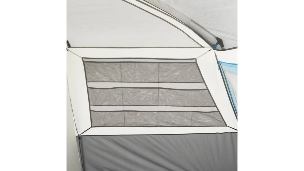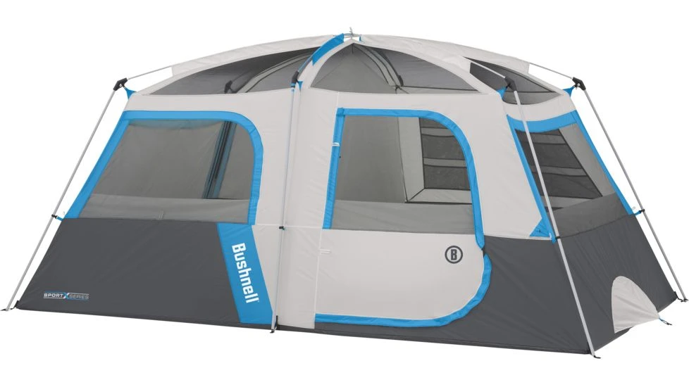Let the Bushnell 8-Person FRP Cabin Tent be your home base on your next adventure. This spacious tent sleeps 8 people or two queen airbeds with a center height of 76. Electrical port access and internal storage pockets keep you organized and connected.A fully taped rainfly protects you from the weather while reflective guylines aid nighttime visibility. Remove the rainfly on clear nights and enjoy panoramic views with the large mesh windows and ceiling. A room divider can be lowered inside the tent, creating two rooms for extra privacy. Multiple mesh storage pockets provide convenient places to store all your gear. An adjustable ground vent keeps the tent cool and comfortable during warm weather camping.![]()