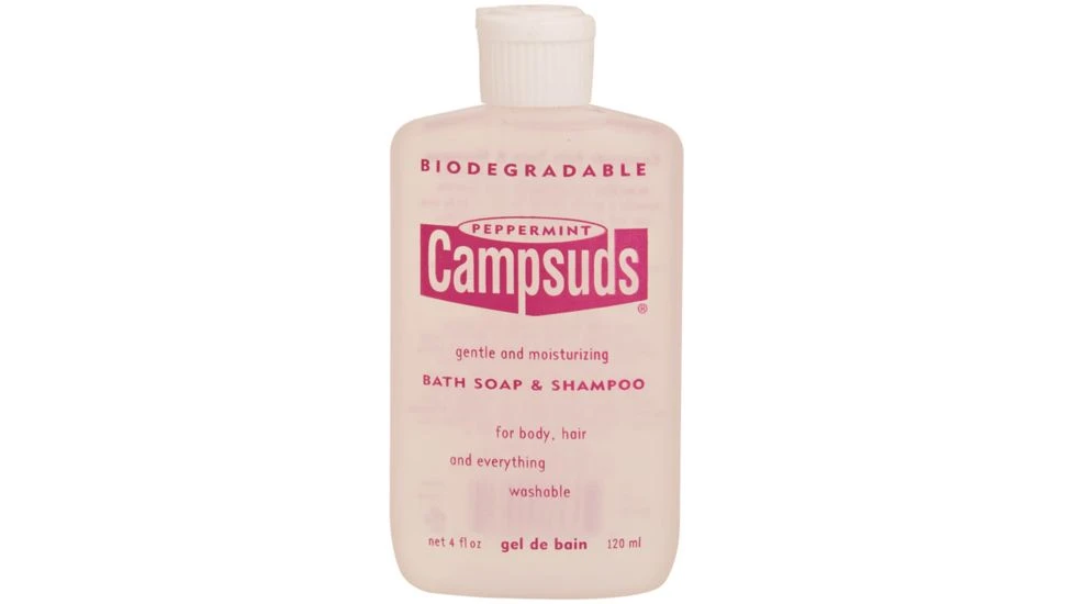 Campsuds is a biodegradable, multi-purpose cleaner created specifically to meet the needs of the camper, backpacker and adventure traveler. Just a few drops will handle any cleaning job. Strong enough for dishes and clothes, yet gentle enough for body and hair. Made from natural vegetable-derived ingredients with natural essential oil fragrance. Makes a great helper around the house too!![]()