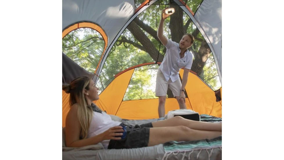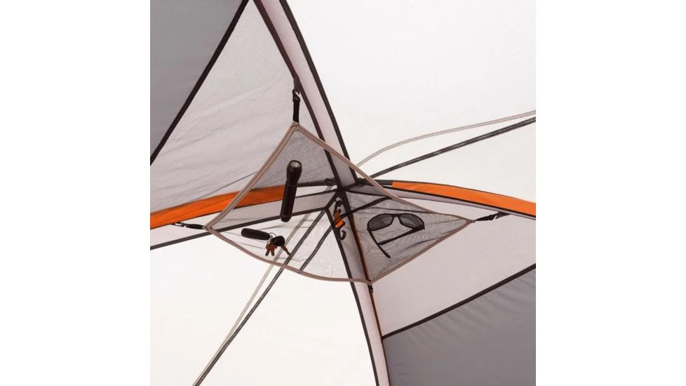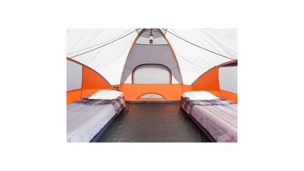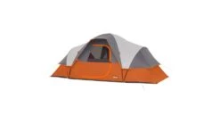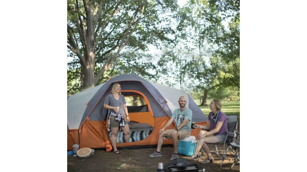 This nine person dome tent also features zippered privacy panels on doors and windows and keeps your gear organized with the included gear loft with lantern hook and organizer pockets.