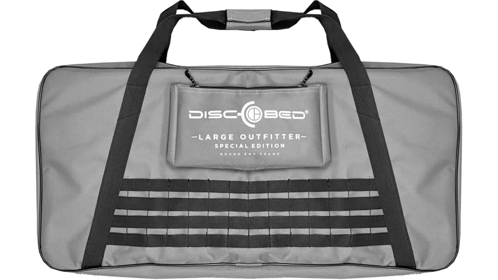 The Disc-O-Bed Outfitter disassembles quickly with all loose parts stowed away into two zippered, canvas carry bags. The parts are securely fastened within the bag to ensure for its ultimate compact, neat and convenient storage and transportation. The two included side organizers connect easily to the sleeping deck using the simple hook and loop system. The organizers include a number of zippered sleeves and pockets to accommodate water bottles, reading and writing materials, a flashlight, keys, an electronic device and any other items you may need. A longer sleeve is also provided to accommodate either a riffle or fishing rod. To alleviate ground sinking, the end frame has been rounded so to protect floors or tent floor surfaces and add to overall stability of the bunk system. With the bunk being off the ground you will have plenty additional storage space under the bunk should it be needed.