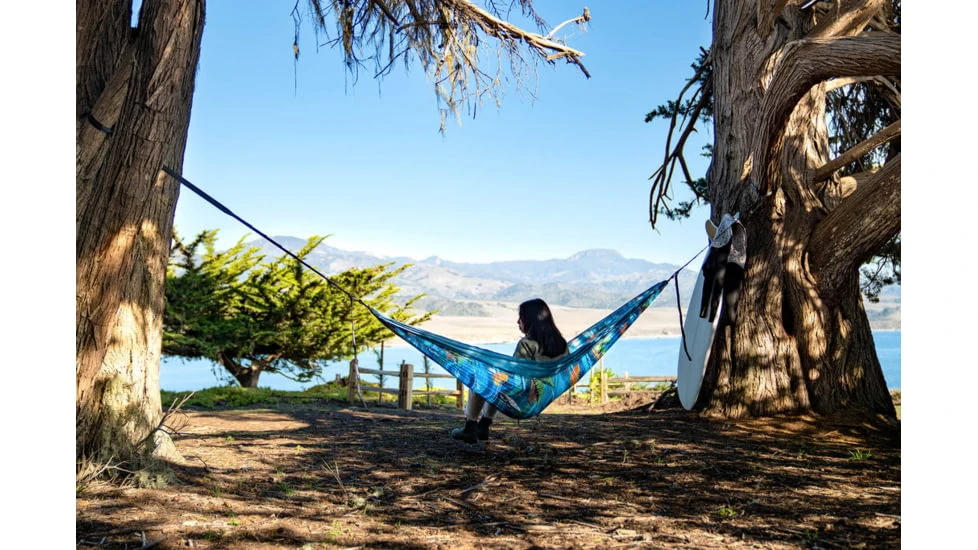 Our ENO DoubleNest hammocks feature a longer hammock body using triple-stitch seam construction with proprietary FreeWave fabric, which offers an exclusive crinkle treatment for exceptional softness and packability.