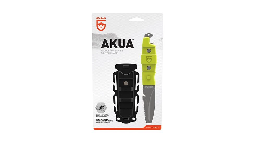 Whether you’re diving the reefs or paddling the river, the Akua rescue knife attaches easily and securely to your PFD, boat deck, BCD, or leg. When the situation arises, quickly release the knife, and cut your way free with the serrated blade, or notify your dive partner with the rounded tank banger. The blunt tip won’t puncture inflatables, and works as a screw/pry tip for digging into some shellfish. Be ready for adventure with a sturdy cutting tool at your fingertips.![]()