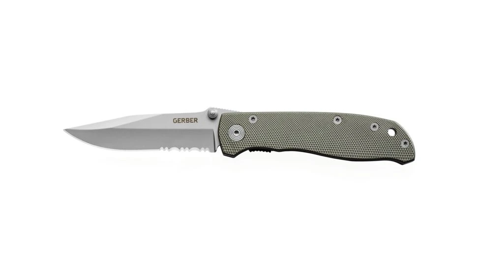 The Gerber Harsey Air Ranger Clip Point Folding Knife – Serrated Blade 45860 is a great way to perform your everyday cutting tasks with ease and efficiency. The handle grip on this Pocket Knife constructed by Gerber is made with a CNC precision machined aluminum and has a checkered pattern to prevent slippage. The Gerber Serrated Harsey Folding Clip Air Ranger Knife is designed with Gerber’s patented liner lock system that keeps the blade secure whether in the opened or closed position. This Gerber Essentials Knife has a high carbon stainless steel blade that is incredibly strong, so you will not have to worry about it breaking with regular use. The Gerber Air Ranger Clip Point Serrated Knife is built to be operated with one hand, keeping the other free to hold whatever it is you are going to cut.![]()