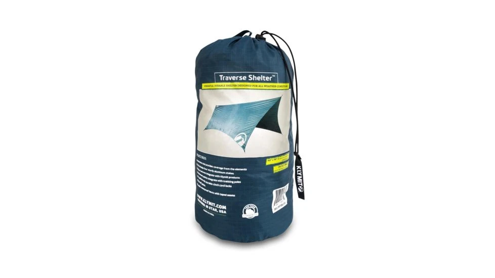 The Klymit Traverse Shelter is a versatile outdoor canopy with a large coverage area measuring 143in x 110in. Six tension lock guylines and 12 tie-off points create a customizable surface area. The large triangulated corner guyline easily accommodate the basket of your trekking poles for unique shelter applications. The strong ripstop polyester, taped seams and thick waterproof coating insure that the Traverse Shelter will keep you dry for the long haul.![]()
