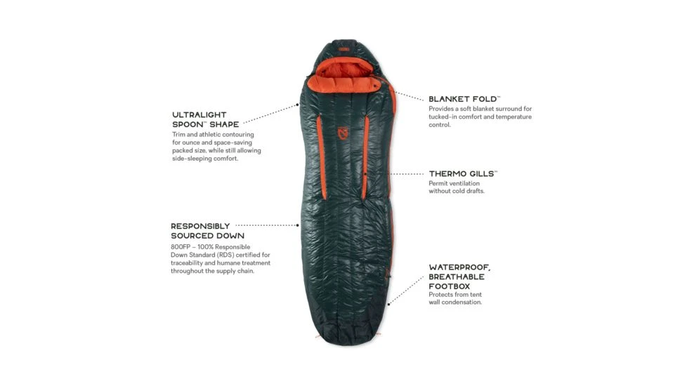 This popular bag is loaded with features, including Thermo Gills that help regulate temperature during the night, Blanket Fold that provides tucked-in comfort, and a waterproof/breathable footbox to withstand tent condensation. Left-sided zippers on Mens and right-sided zippers on Womens allow Riff to zip together for a double bag.