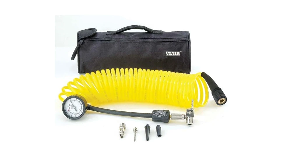 5-in-1 Deflator/Inflator, 25 Ft. Coil Hose, 100 PSI Inline Gauge, Bag. Coil Hose with inline inflator/deflator pressure gauge, 3-piece inflation tips kit, quick connect stud, and storage bag. (25ft. hose rated to 200 PSI) For use with 300P and larger portable compressors and H model compressors.![]()