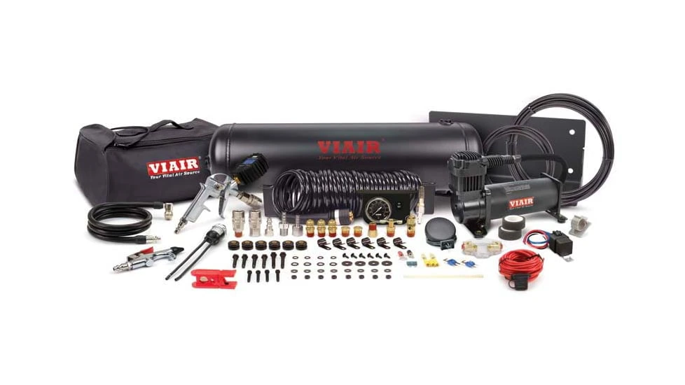 Expedition High-Pressure OBA – 200 PSI, For Up to 37″ Tires. VIAIRs Expedition High Pressure Onboard Air System is a pre-packaged compressed air solution that features a 100% duty cycle Stealth Black 444C compressor, a 2.5 gallon air tank, 180 PSI digital tire inflation gun, and all necessary components needed to install a working system, useful for multiple pneumatic applications.![]()